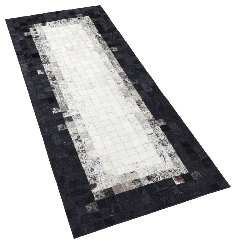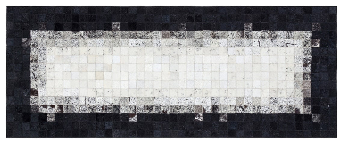 Grey & Black Squares Handmade Cowhide Patchwork Rug