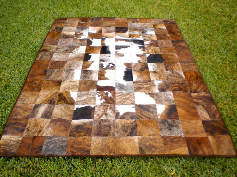 White & Brown Squares Handmade Cowhide Patchwork Rug